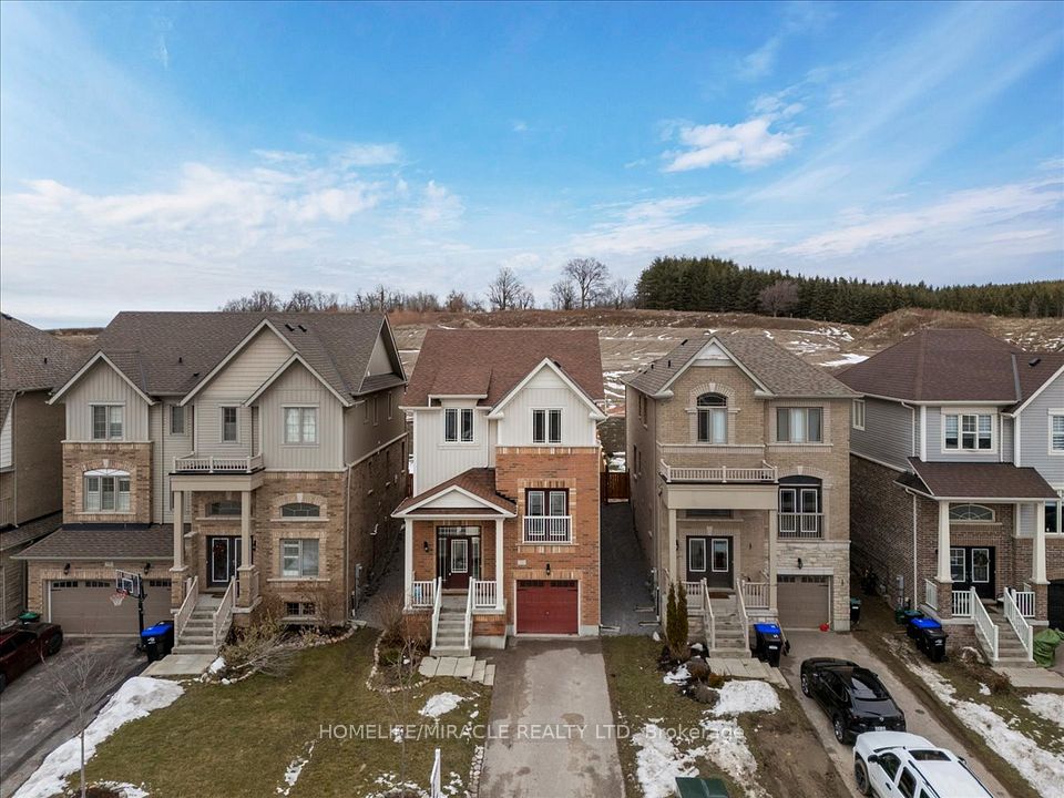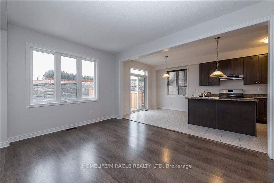Detached 4 bedroom 3 bathroom family home located in the sought after Treetops subdivision of Alliston. This home offers open concept living with beautiful hardwood and laminate flooring throughout. The eat in family size kitchen features ample cabinetry and storage along with a convenient butler's pantry and server area, perfect for entertaining and additional prep space. Formal dining room and spacious living room provide an ideal layout for both everyday living and hosting guests. The primary bedroom includes a private ensuite bathroom and walk in closet. Enjoy the convenience of second floor laundry. Parking for three vehicles with a paved driveway. Large backyard backing onto green space offers privacy and a great outdoor setting. Close to schools parks shopping Honda plant Walmart and major amenities with easy access to highways.