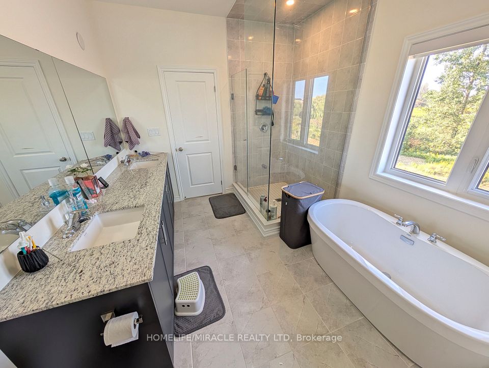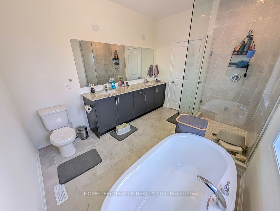 Welcome to this stunning detached home on a premium ravine lot with a walkout basement, offering a peaceful and private outdoor retreat. This double-car garage property features a modern design and numerous upgrades, including five appliances, quartz countertops throughout, upgraded floor tiles, shower pot lights, and enhanced kitchen cabinetry. This home is equipped for modern comfort. The master bedroom boasts a 10 ft coffered ceiling, with 9 ft ceilings on both the main and first floors, creating an open, spacious feel. Conveniently located within walking distance to transit, minutes from Mount Pleasant GO Station, schools, and various plazas and amenities. The utility is 70/30% split.