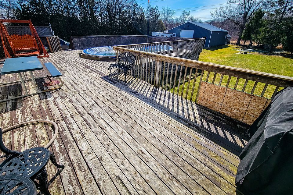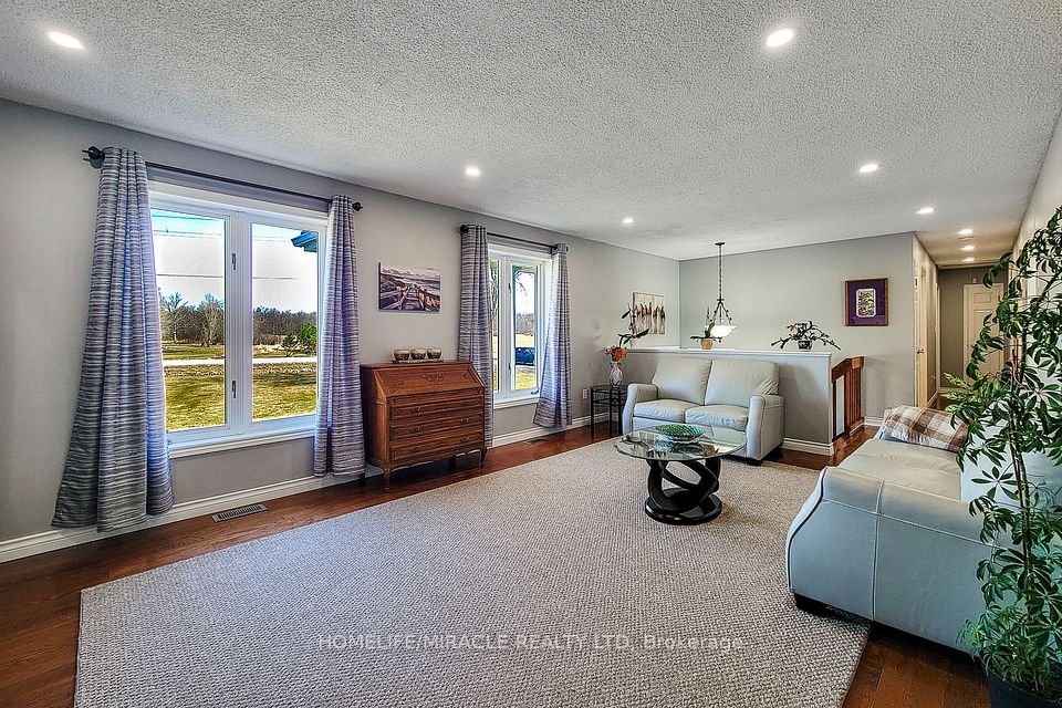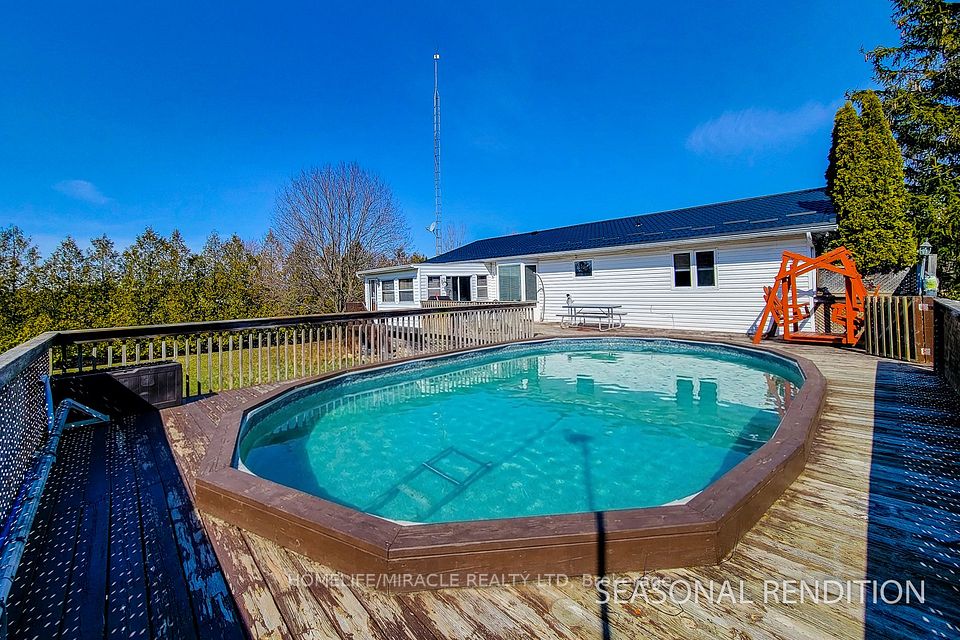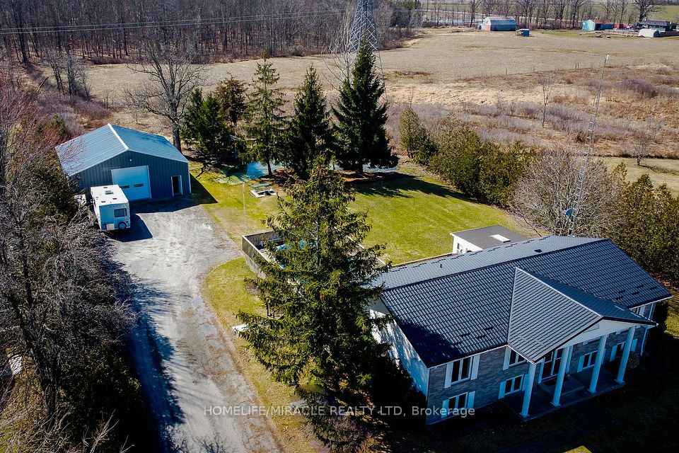Welcome to this beautifully renovated country retreat, perfectly situated on a spacious and private lot surrounded by mature trees and open green space. This charming home offers the ideal blend of modern updates and peaceful outdoor living. Inside, the home has been completely renovated and showcases a bright, open-concept kitchen featuring quartz countertops, stainless steel appliances, a stylish backsplash, pot lights, and durable tiled flooring. The inviting living area offers rich hardwood floors, a cozy gas fireplace, and additional pot lighting, creating a warm and welcoming space for everyday living and entertaining. The main level is thoughtfully designed with two full bathrooms for added convenience. The lower level features large above-grade windows that bring in natural light, new carpeting throughout, and two generously sized bedrooms-perfect for family, guests, or a home office setup. Step outside to enjoy your own private backyard oasis. A large deck spans the entire back of the home, ideal for entertaining or relaxing while overlooking the expansive yard. The above-ground swimming pool is ready for summer enjoyment. Adding incredible value is the impressive 40 x 40 detached garage/workshop, fully spray-foamed and equipped with Propane Furnace perfect for hobbyists, car enthusiasts, or a year-round workspace. The long driveway and additional outdoor space provide ample parking for vehicles, trailers, or recreational equipment. With its wide-open surroundings, mature landscaping, and versatile outbuilding, this property offers the perfect balance of comfort, functionality, and country charm-all while still being within easy reach of nearby amenities.